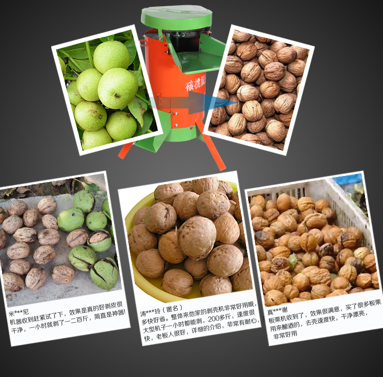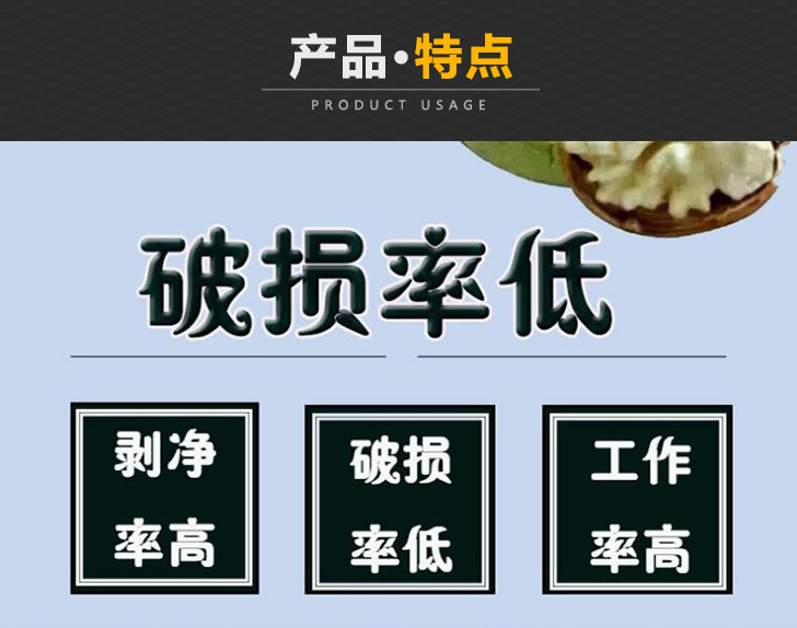 2、本設備脫凈率高于99%,核桃殼破損率小于0.5%。適用于小型加工企業或核桃加工經營商戶。