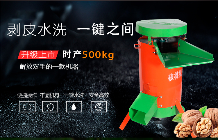 青核桃脫皮機為新一代集青核桃脫皮、粗洗、精洗為一體的核桃加工機械,獨特創新的結構設計,使用起來剝殼效果非常好,大大減輕核桃脫皮清洗勞動強度,省時省工,還提高了核桃品質和商品率。